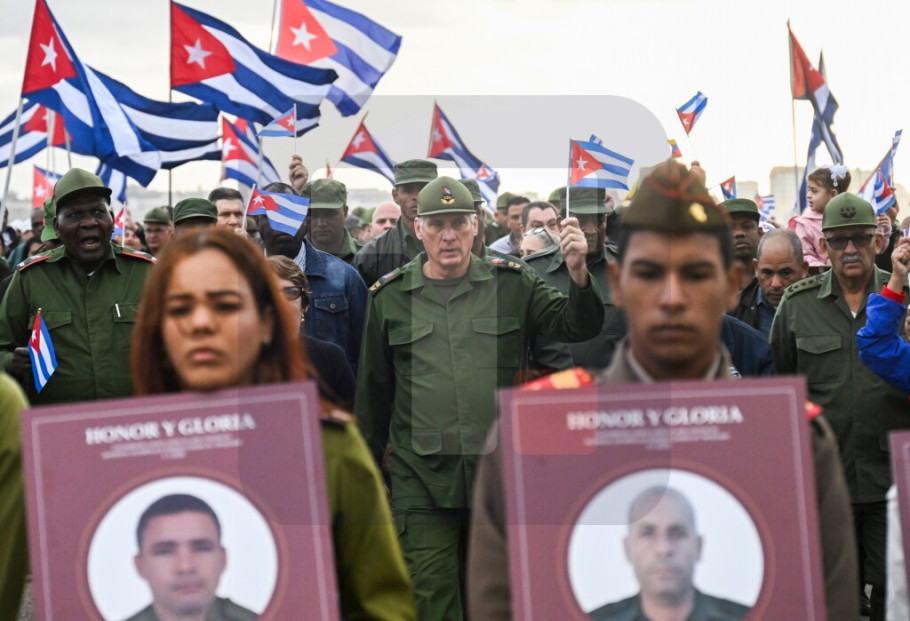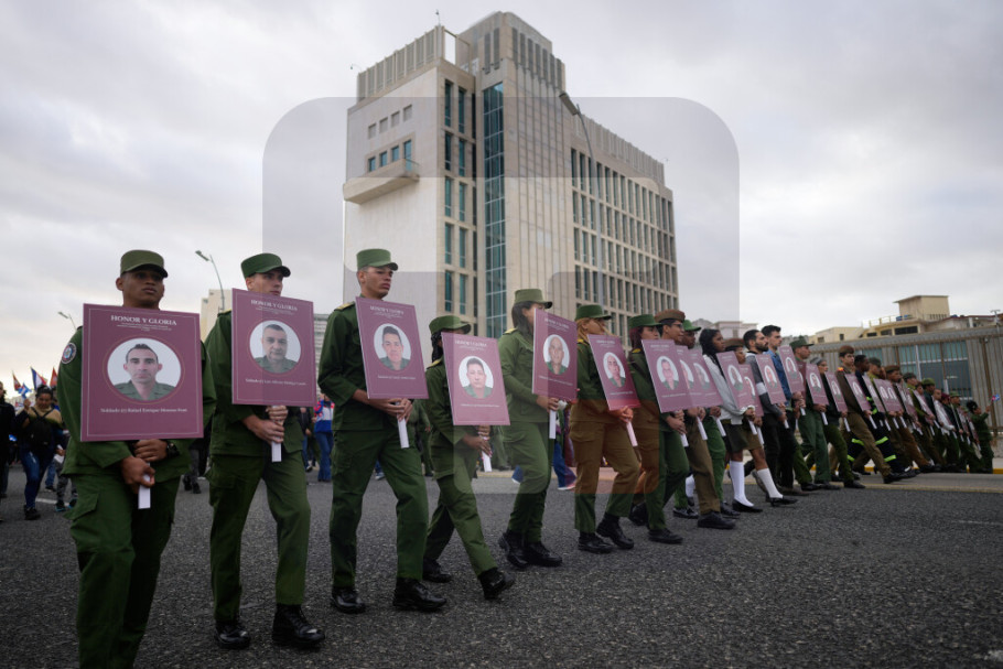 Desetine hiljada Kubanaca okupile su se juče u sedištu Ministarstva oružanih snaga kako bi odale počast grupi od 32 poginula oficira.