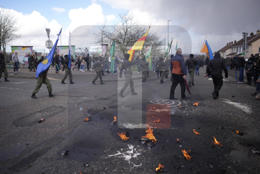 LONDONDERI - Više maskiranih ljudi napalo je policiju benzinskim bombama i drugim predmetima na paradi protiv mirovnog sporazuma na Veliki petak u Londonderiju, saopštila je danas policija, dan pre posete predsednika SAD Džozefa Bajdena Belfastu.