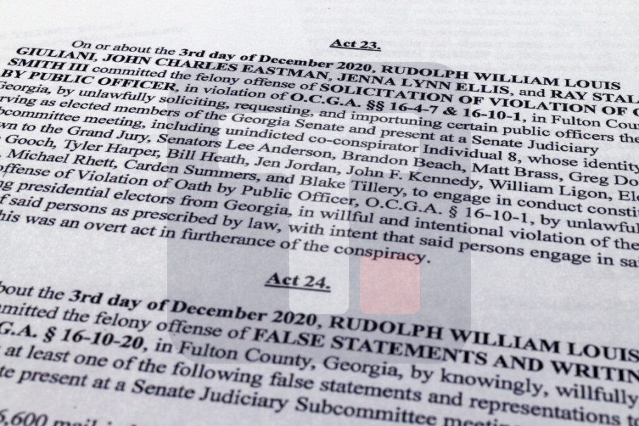 Na vebsajtu suda okruga Fulton bilo je objavljeno da je Tramp, između ostalog, optužen za ucenu državnih zvaničnika, zaveru za davanje lažnih izjava i zahtevanje od javnog zvaničnika da prekrši svoju zakletvu.