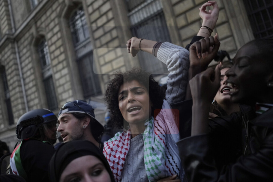 Oni su izvikivali parole "Izrael ubica" i "Makron saučesnik", prenosi Rojters.