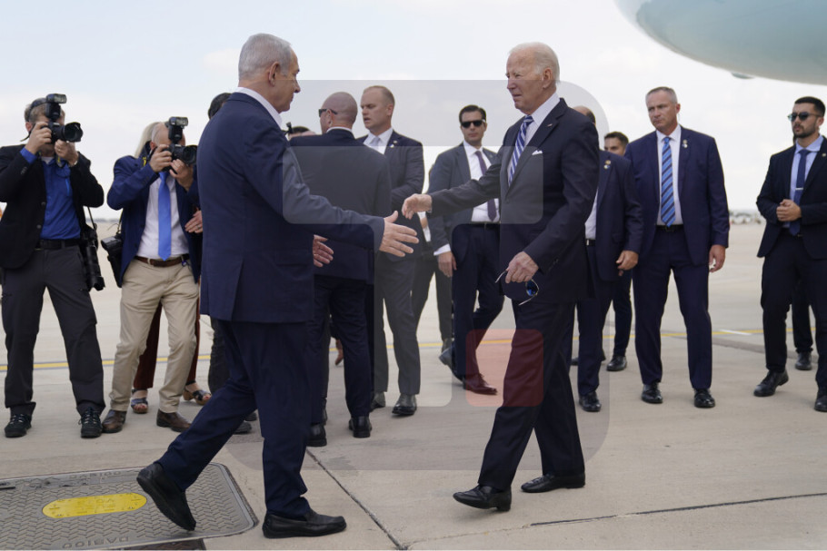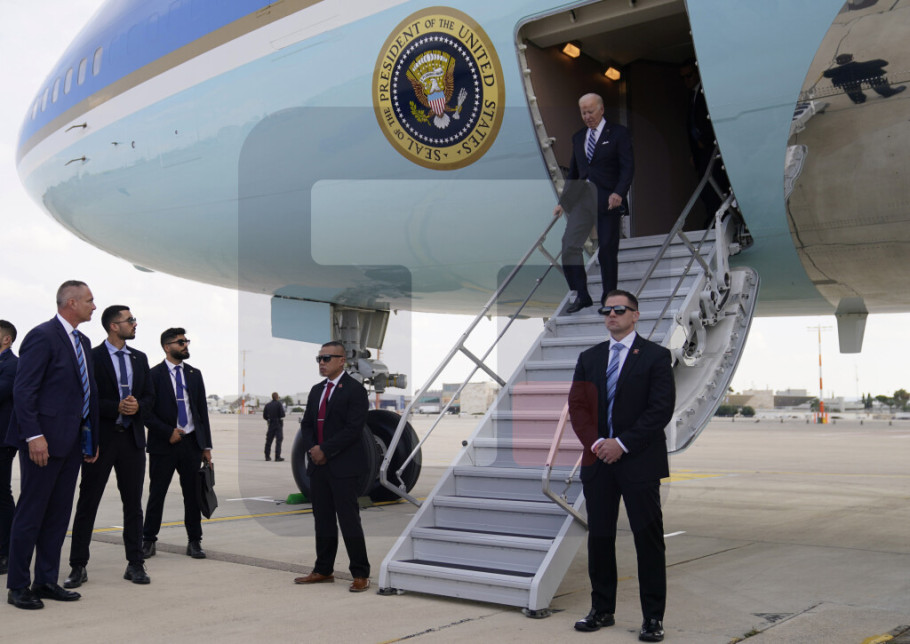 Nakon što je izašao iz aviona, Bajden je zagrlio izraelskog premijera Benjamina Netanijahua i predsednika Isaka Hercoga na aerodromu.