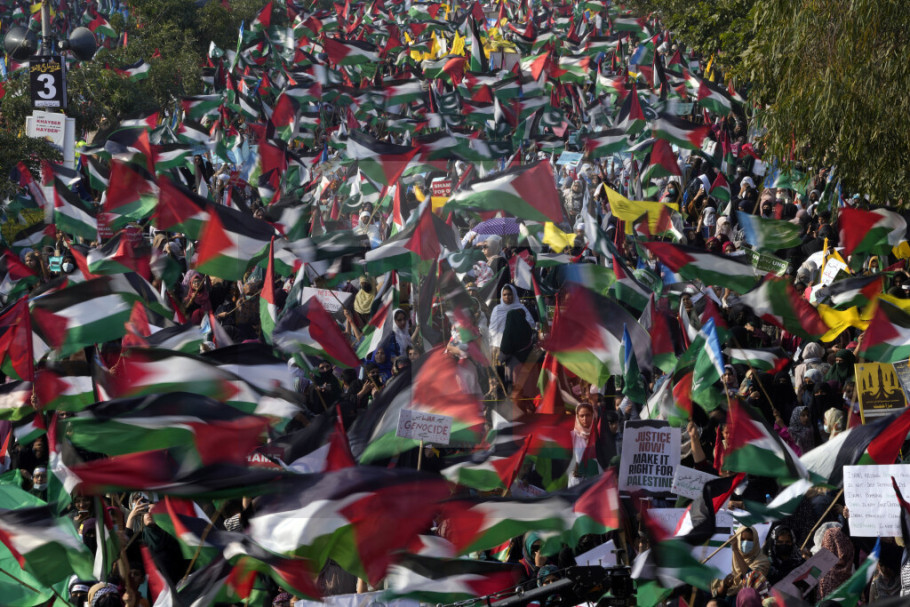 Desetine hiljada pristalica glavne pakistanske verske političke stranke Džamat-e-islami okupili su se u istočnom gradu Lahoreu kako bi izrazili protest protiv izraelske vojne kampanje protiv Hamasa u Gazi i neuspeha sveta da zaštiti stanovnike Gaze pozivajući na džihad protiv Izraela.