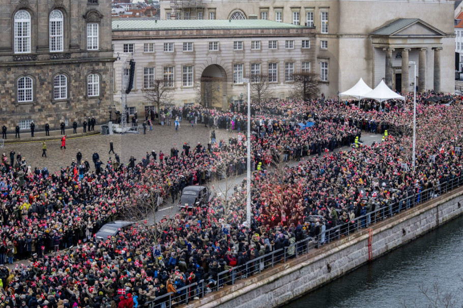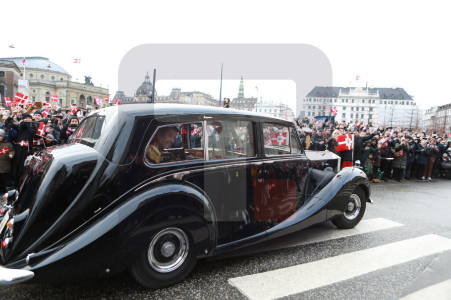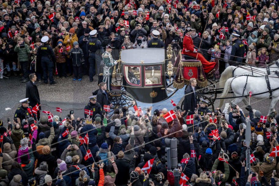 Televizija je prikazala snimak kako kraljica Margret napušta zamak Kristijansborg automobilom kroz ogromnu gužvu u Kopenhagenu.