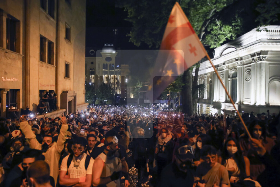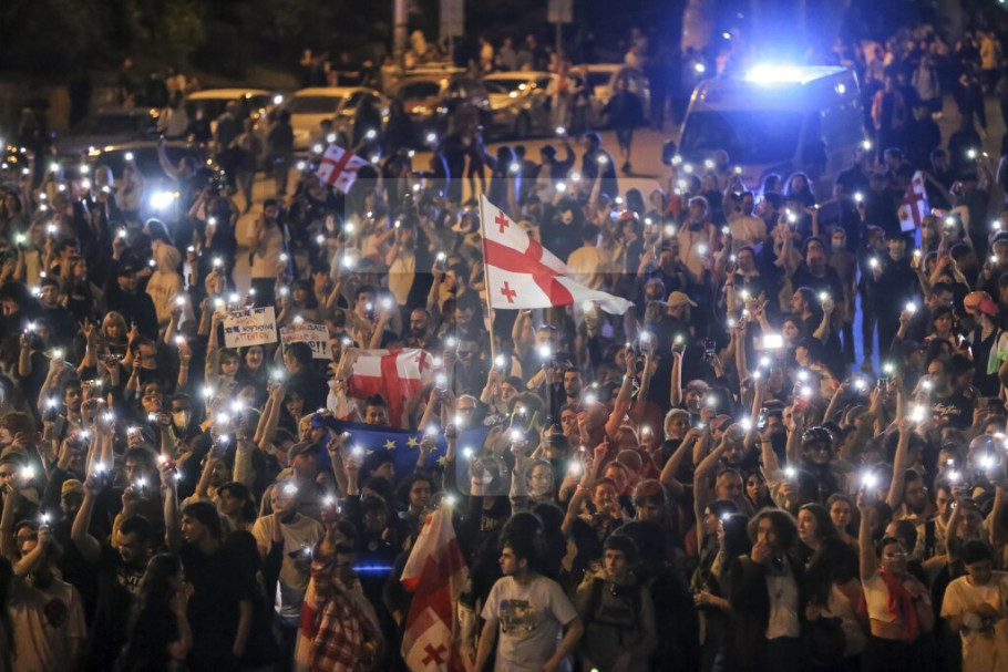 TBILISI - Više hiljada demonstranata blokiralo je večeras ključnu saobraćajnicu u Tbilisiju protestujući protiv usvajanja zakona o "stranim agentima" u Gruziji.