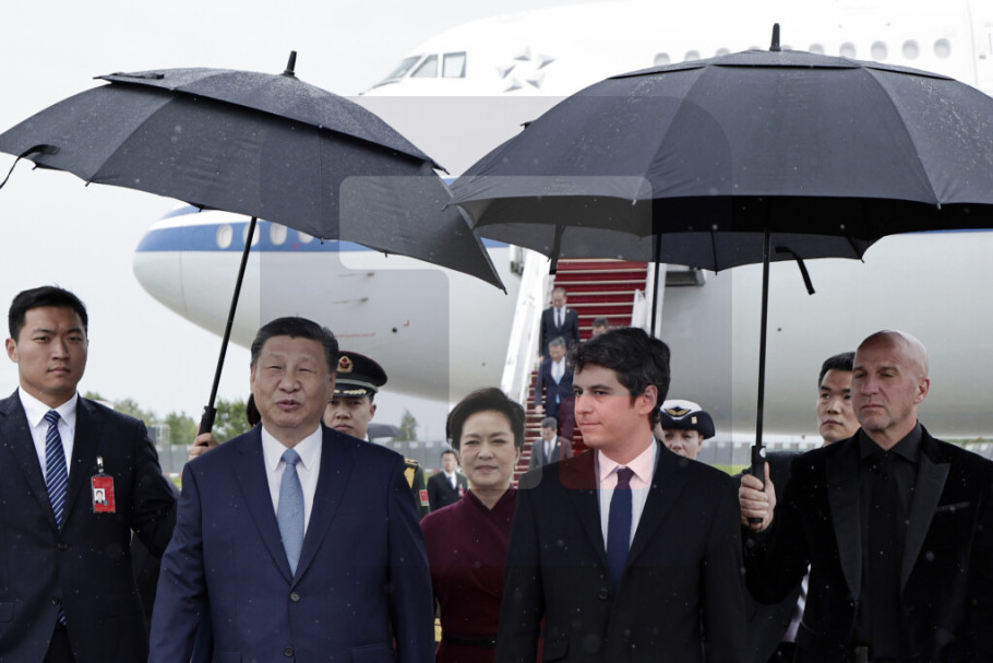 Predsednika Kine je na aerodromu u Parizu dočekao premijer Francuske Gabrijel Atal.