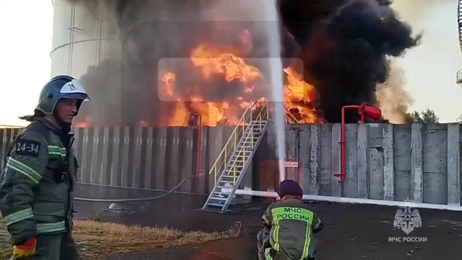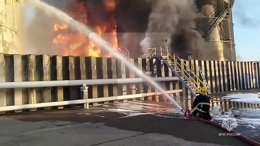 Pres-služba ruskog Ministarstva za vanredne situacije saopštila je jutros da vatrogasci gase požar u rezervoaru sa naftnim derivatima u Azovskom okrugu Rostovske oblasti.