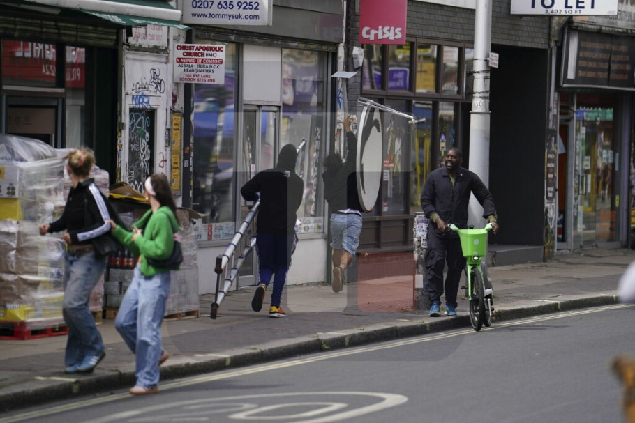 Treći rad na temu životinja u Londonu prikazuje tri majmuna koji se ljuljaju preko mosta u Brik Lejnu i otkriven je u sredu u blizini ulice Grimsbi.